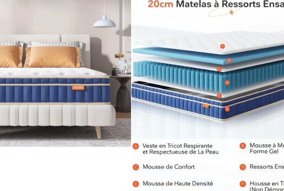 Avec sa mousse à mémoire de forme en gel et ses 7 zones de ressorts ensachés, ce matelas offre un soutien parfait pour un sommeil réparateur. Idéal pour les couples, il réduit les transferts de mouvement et s’adapte à votre morphologie. De plus, il est certifié OEKO-TEX et CertiPUR-US pour une utilisation en toute sécurité.