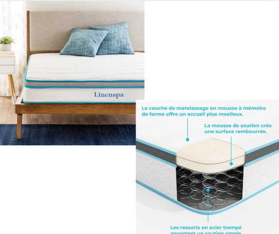 5. Linenspa Matelas Hybride – Équilibre parfait